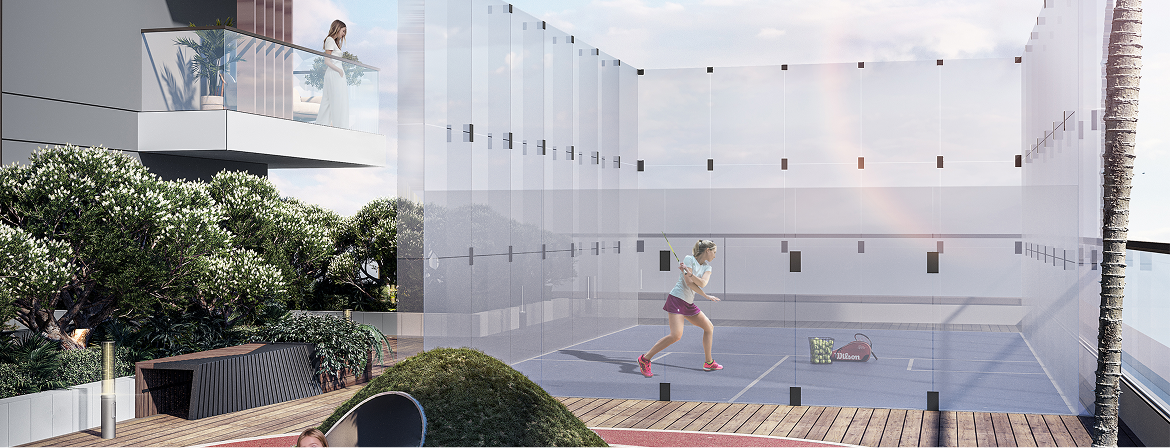 Het gebouw bestaat uit een stijlvolle toren met 27 verdiepingen, ondersteund door 5 verdiepingen aan parkeerfaciliteiten praktisch, veilig en exclusief voor bewoners.